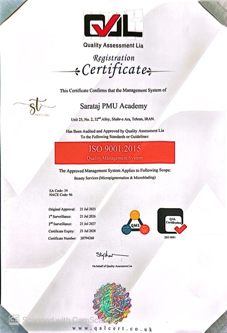 این گواهی معتبر جهانی، نشاندهنده رعایت استانداردهای مدیریت کیفیت در ارائه خدمات زیبایی، مشاوره تخصصی، بهداشت محیط کار و رضایت مشتریان است. دریافت این گواهی، برند سارا تاج را در سطح بینالمللی قابل اعتماد و حرفهای معرفی میکند.